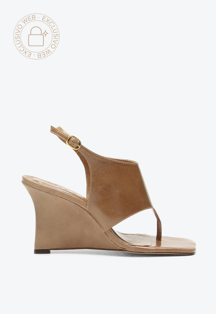 Sandália de salto alto em couro bege. Uma proposta autêntica e minimalista, esse modelo é a cara da temporada. Perfeito para compor looks com vestidos de todos os tipos!