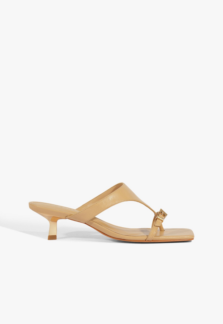 Essa sandália mule marrom-clara em couro é puro estilo e conforto! O cabedal em formato de T com tira fina sobre os dedos e fivela delicada adiciona um toque feminino e refinado, enquanto o bico quadrado reforça a modernidade do modelo. Elegante e charmosa com seu confortável salto médio tipo kitten, ela é a escolha ideal para elevar looks de todas as horas!