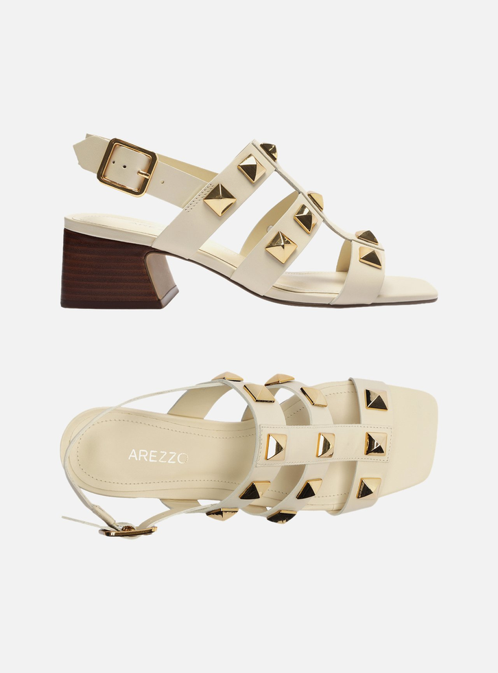 Sandália Off-white Arezzo Couro Salto Baixo Tachas