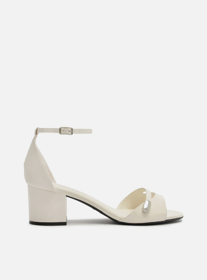 Sandália Off-White Salto Médio Bloco