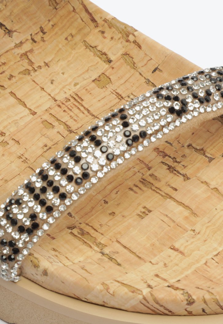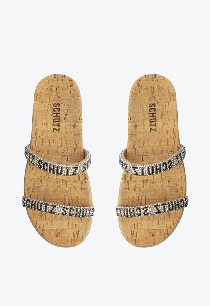 Confortável e estilosa, essa sandália papete se destaca pelas tiras com malha de cristais com o toque da logomania Schutz. A palmilha em cortiça faz um contraste super trendy com o visual glam do brilho. Vai ser uma aposta certeira!