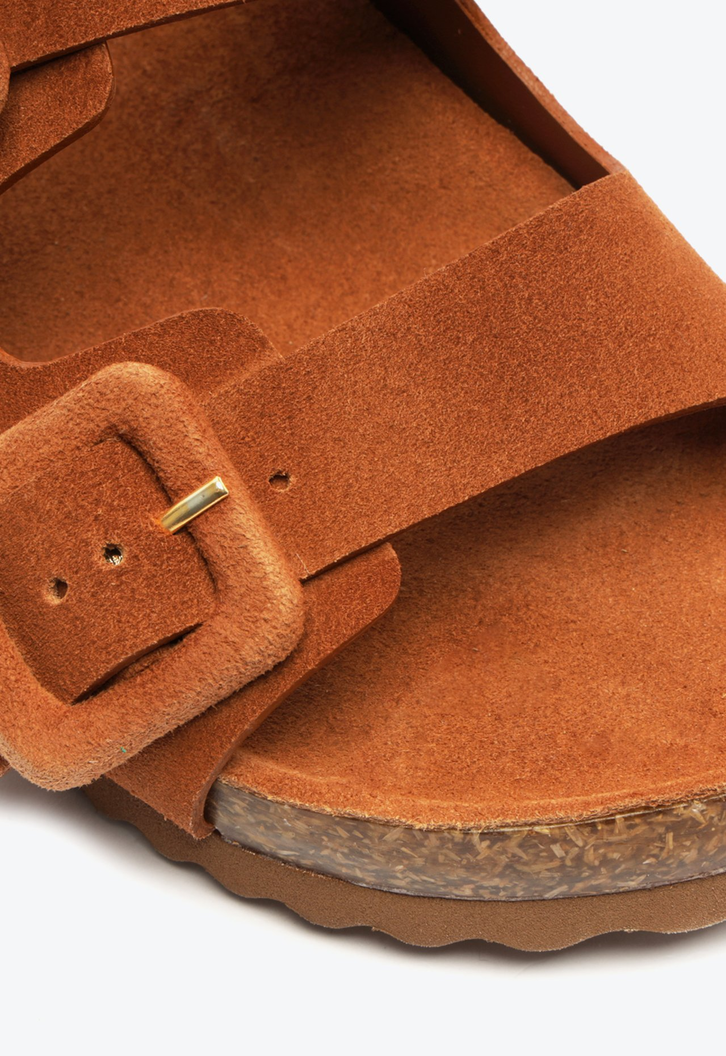 De fácil calce, essa confortável sandália papete combina a sofisticação da camurça ao visual descontraído desse modelo. O acabamento marrom monocromático deixa essa sandália mais moderna e elegante - você vai querer usar com tudo!