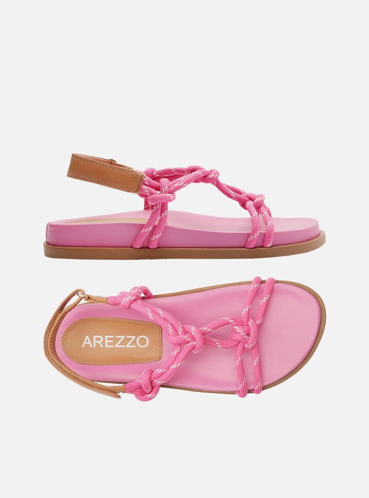 Sandália Papete Rosa Arezzo Couro Custom Anklet