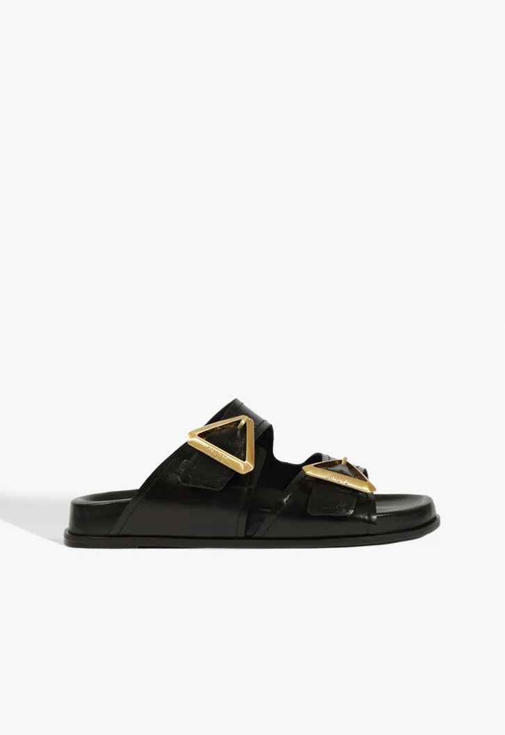 Esta sandália papete é a definição de luxo contemporâneo. Unindo o conforto absoluto do solado anatômico ao design icônico das fivelas triangulares, ela é a peça-chave para quem deseja elevar o visual casual sem esforço.