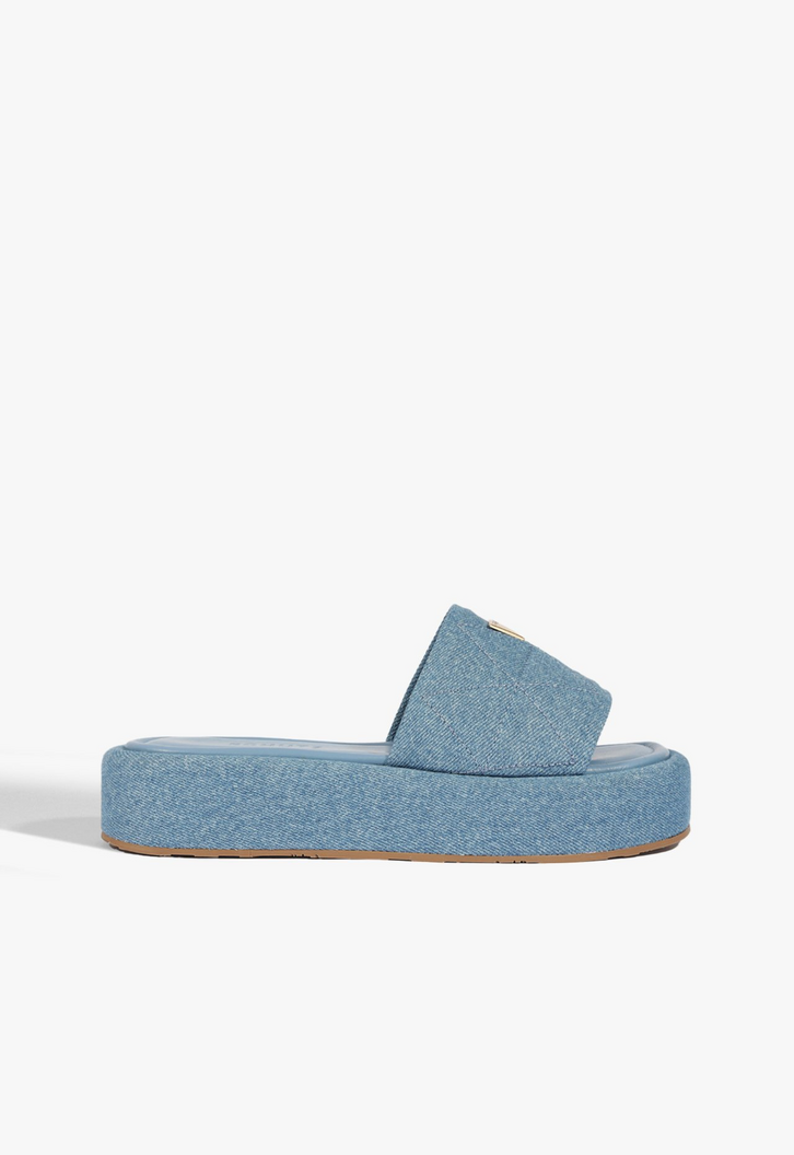 Para quem busca conforto e estilo, esta sandália papete jeans é a aposta ideal! Com solado elevado tipo flatform, o modelo slide garante um visual moderno e praticidade no calce. Sua tira larga na região dos dedos cria um visual clean, enquanto a aplicação do nosso Triangle metalizado traz um toque de luxo. O bico quadrado deixa esta sandália ainda mais trendy, perfeita para elevar o estilo em produções casuais!