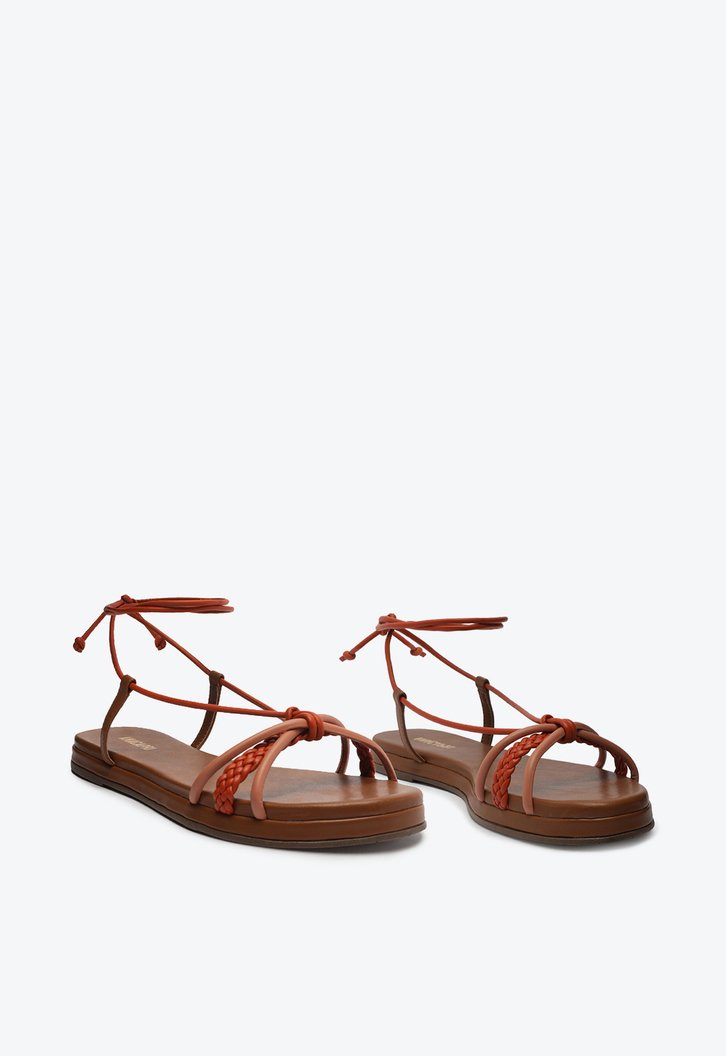 Sandália de amarração multineutros trançada. Multineutra, a sandália estilo papete traz solado flatform com palmilha anatômica, garantindo maior estabilidade e conforto no calce. Apresenta três tiras na gáspea em tons neutros de rosa e laranja - uma central sobre os dedos toda trançada e outras duas mais fininhas que se prendem nas laterais, com fechamento superior por amarração no tornozelo, com ponteiras em nozinhos delicados. Palmilha anatômica de mesmo tom da sandália, com assinatura Anacapri.