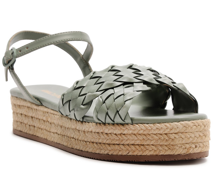 Sandália Plataforma Sola de Corda Tranças Verde. O modelo tem salto baixo flatform revestido em corda trançada e biqueira arredondada. Apresenta duas tiras largas com detalhes de recortes em trança que se cruzam sobre os dedos e sobre o peito de pé. Traz palmilha acolchoada de mesmo tom da sandália, com assinatura Anacapri. Possui tira fina traseira que contorna o calcanhar conectada em tira que abraça o tornozelo, com fechamento afivelado na lateral.