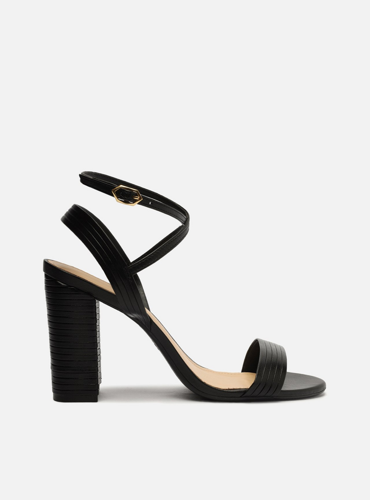 Sandália Preta Salto Alto Tiras Cruzadas