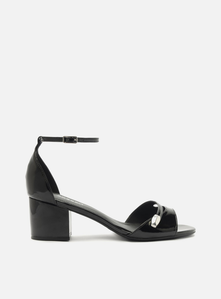 Sandália Preta Salto Médio Bloco
