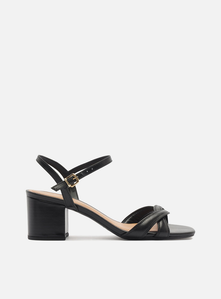 Sandália Preta Salto Médio Bloco