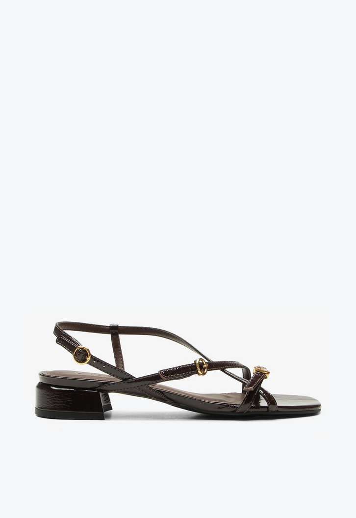 Sandália de salto baixo em verniz marrom. O brilho sofisticado do verniz combinado com o tom profundo do marrom traz uma presença marcante, que se destaca sem perder a sutileza. Essa peça é versátil e indispensável para quem valoriza conforto e estilo em qualquer ocasião. Com design pensado para garantir leveza e segurança ao caminhar, ela se adapta facilmente a diferentes visuais, tornando-se uma escolha prática e elegante para o dia a dia.