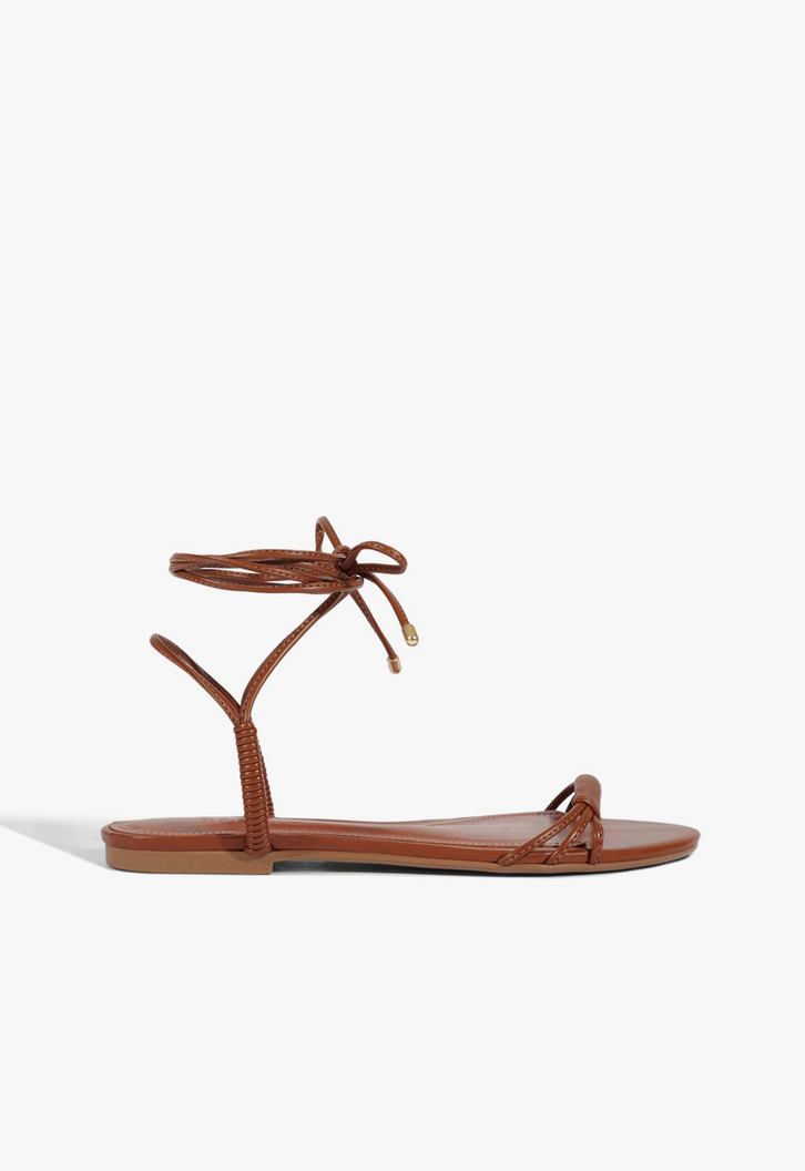 Leve, delicada e com um toque sexy, essa sandália rasteira marrom em couro é perfeita para os dias em que você quer conforto sem abrir mão do estilo. O cabedal com tiras finas sobre os dedos e o bico redondo valorizam a feminilidade, enquanto o fechamento com amarração no tornozelo garante um visual moderno e sexy. Ideal para compor looks fresh e elegantes!