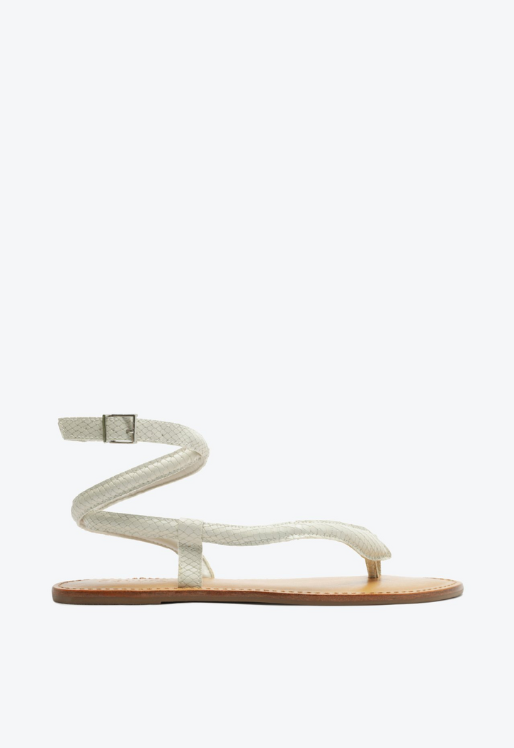 Foi-se o tempo em que as sandálias rasteiras eram apenas um item básico de conforto! Agora elas surgem cheias de sofisticação como protagonistas do look, especialmente se for uma versão como esta, que incorpora a snake não só na textura como também em sua sinuosa (& sexy) tira! Aposte!
