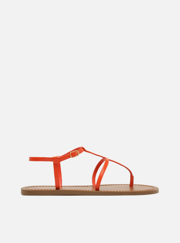 Sandália Rasteira Laranja Salto Rasteiro Fivela