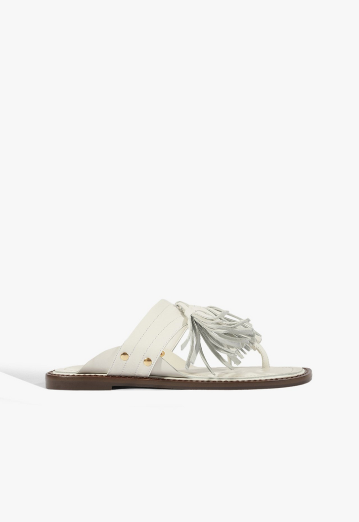 A rasteira em couro que é a cara do verão! A Sandália Maribel combina o conforto do couro macio com o charme inconfundível do maxi-tassel monocromático. Use-a com vestidos longos ou mídi, de preferência em tecidos leves e esvoaçantes, para um look boho-chic perfeito para fins de semana ou happy hour.