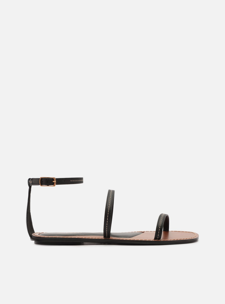 Sandália Rasteira Preta Bico Redondo