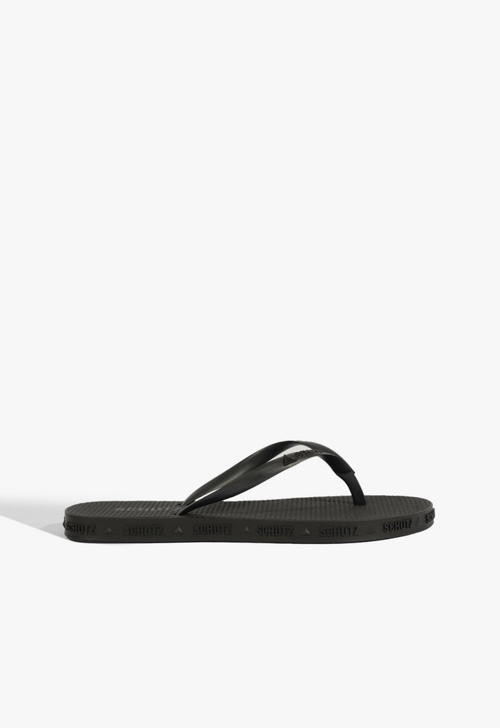Esqueça o chinelo comum. A Schutz elevou o patamar dos essenciais com este modelo que transborda personalidade. Na cor preta, a tonalidade mais desejada da temporada, ele é o equilíbrio perfeito entre o despojado e o sofisticado.