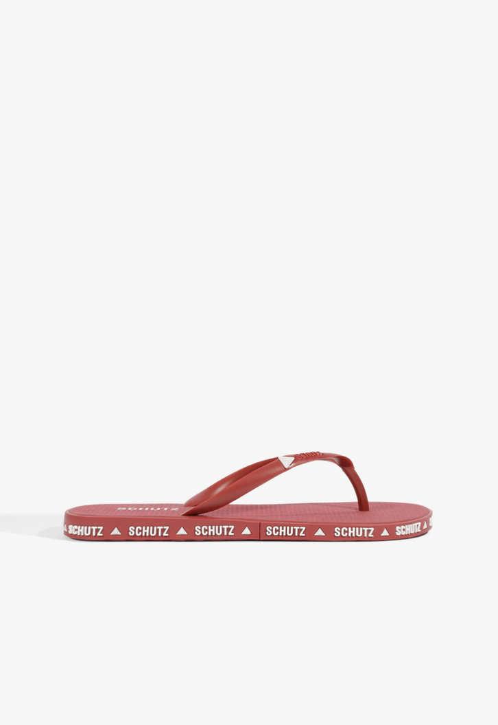 Esqueça o chinelo comum. A Schutz elevou o patamar dos essenciais com este modelo que transborda personalidade. Na cor vermelha, a tonalidade mais desejada da temporada, ele é o equilíbrio perfeito entre o despojado e o sofisticado.