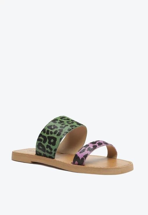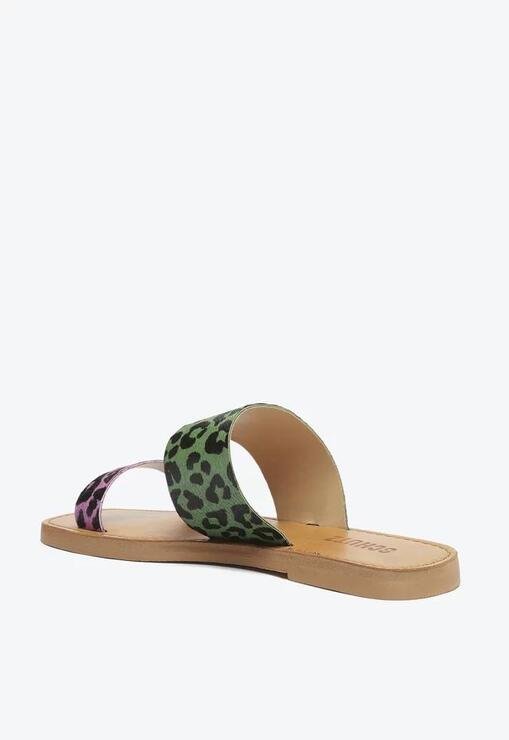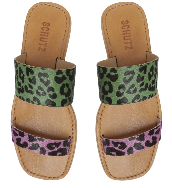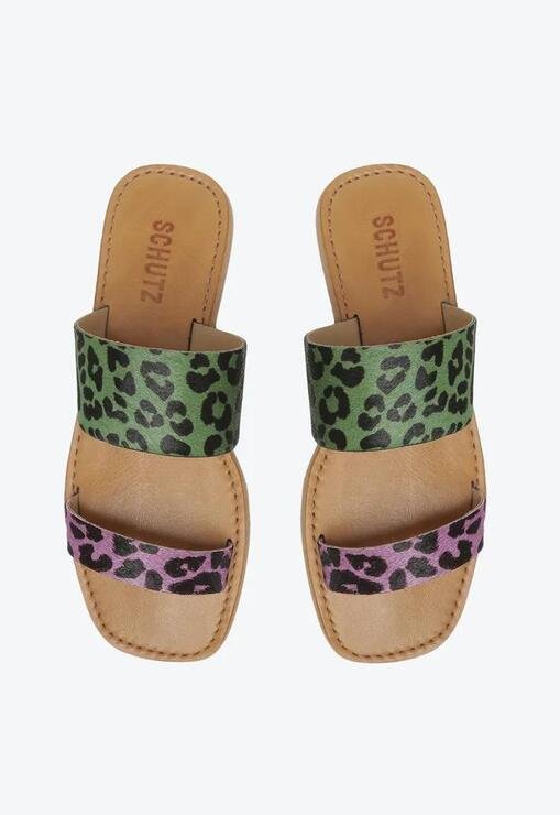 Sandália Rasteira Slide Animal Print Verde E Roxa Schutz Couro