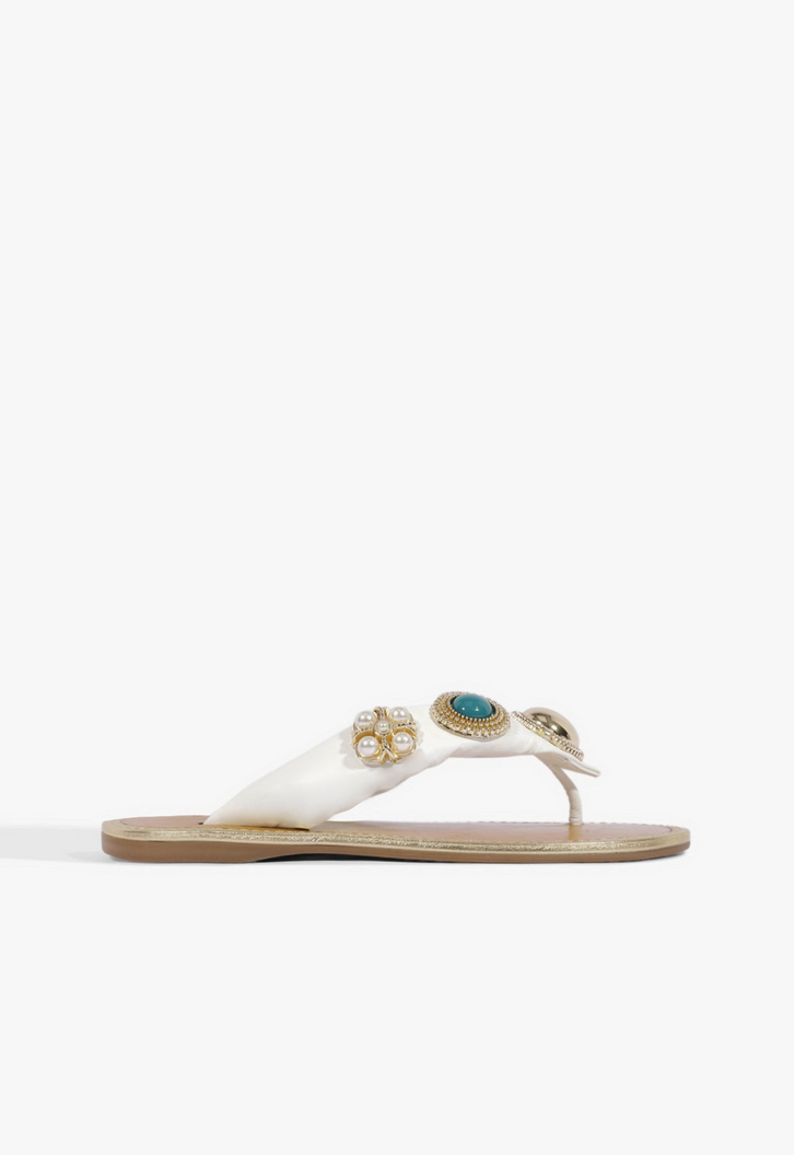 Com um visual glam e trendy, essa sandália rasteira feminina combina o mood casual das tiras de dedo à sofisticação da aplicação da pedraria maxi. As tiras em couro com volume deixam essa sandália branca ainda mais confortável. Aposte!