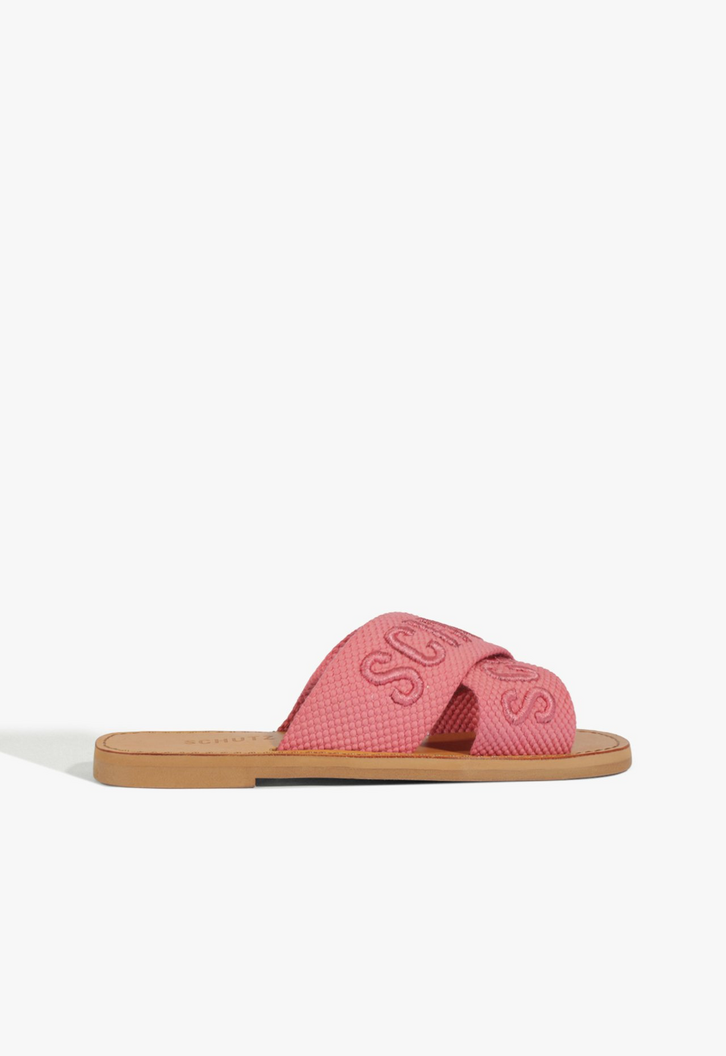 Sandália rasteira com cabedal em formato de X, confeccionado em gorgurão e detalhe do logo Schutz bordado. Um modelo versátil e estiloso, ideal para compor produções casuais com um toque de personalidade.
