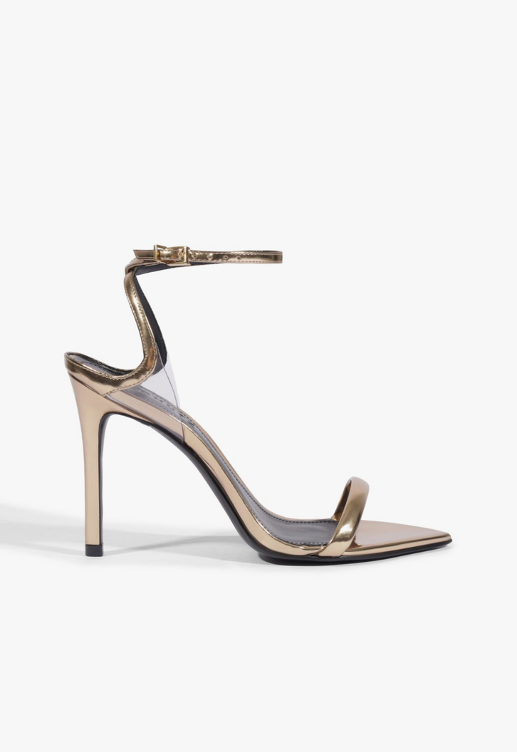 Sandália Salto Alto Skye Couro Dourado