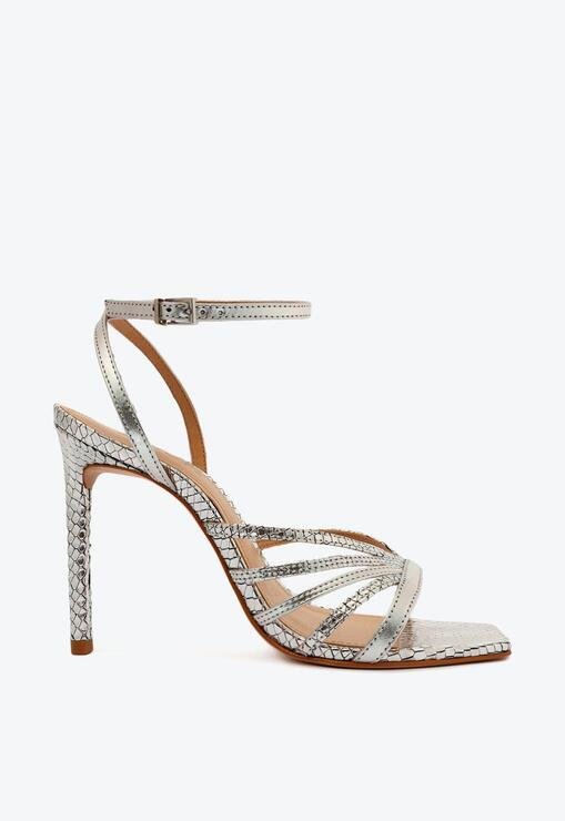 Trazendo uma proposta glam para a sua sandália de festa, esse modelo se destaca por suas delicadas tiras em linhas assimétricas que vestem os pés de uma forma super sexy! O mix entre o acabamento dourado e a textura snake metalizada deixa esse modelo ainda mais sofisticado. Poderosa com seu salto alto e fino, essa sandália feminina também conta com a frente quadrada que acomoda os pés com mais conforto. Se você está em busca de um modelo com um visual luxuoso e moderno, acaba de encontrar!