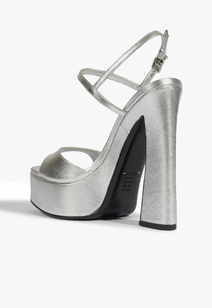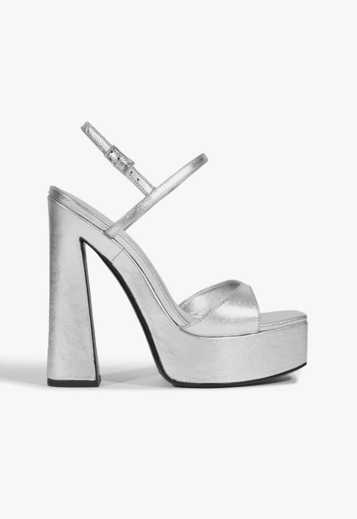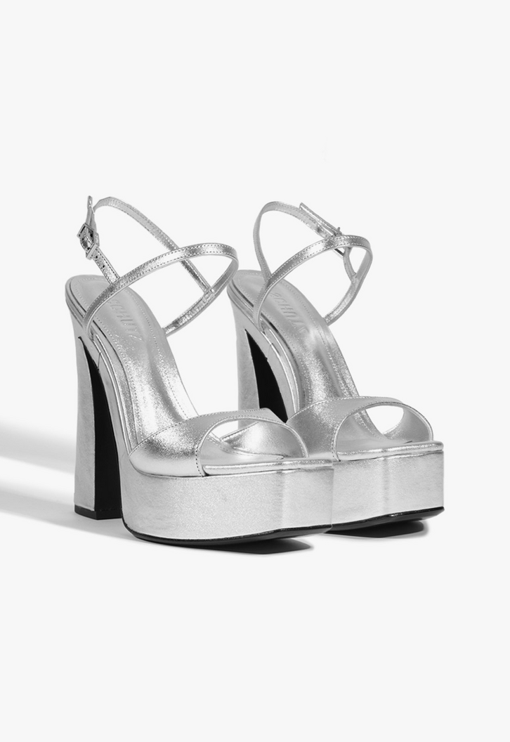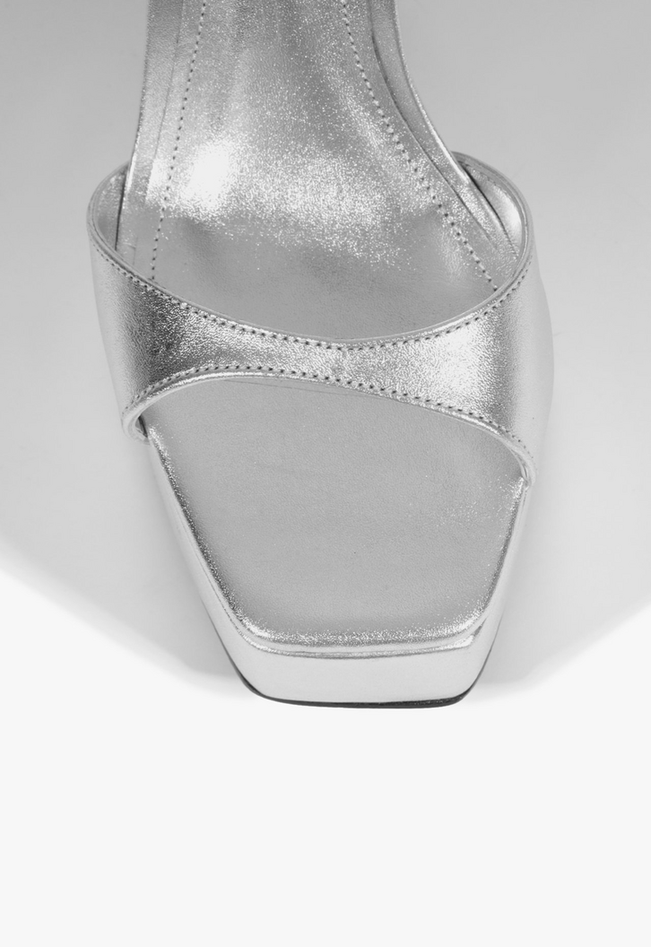 Com um design imponente, esta sandália prata em couro combina glamour e conforto. O contraste das tiras – uma mais larga sobre os dedos e outras mais fininhas com o fechamento de fivela - proporciona charme e firmeza ao calce. Com salto bloco alto, plataforma frontal e bico quadrado, esse modelo garante estabilidade sem abrir mão do estilo. Perfeita para compor looks sofisticados e com personalidade!