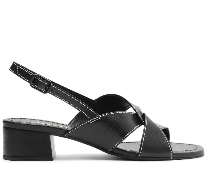 Sandália de salto bloco, com tiras largas e transpassadas, na cor preta. O modelo de salto em bloco médio, apresenta cabedal imponente com duas tiras largas transpassadas e acabamento em pesponto delicado nos contornos - com design entrelaçado na lateral, sobre os dedos e peito de pé. Com fecho regulável em fivela lateral, por tiras fininhas que seguem pelas laterais e contornam o calcanhar. De biqueira arredondada, traz palmilha no mesmo tom da sandália, com assinatura Anacapri em carimbo metálico.