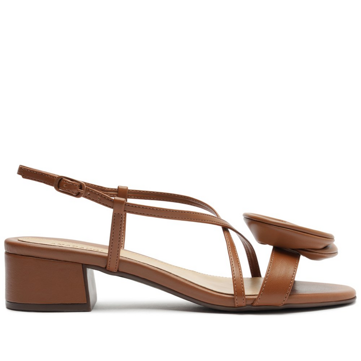 Cada destino com Anacapri é uma nova história a ser vivida. Lançamento Resort de Flores, vamos explorar novos horizontes onde o sol será nosso guia, repletos de cores, leveza e a magia do verão. Sandália Anacapri marrom de salto bloco, com detalhe em flor. O modelo, de material similar ao couro, possui salto em bloco médio e biqueira moderna quadrada. Traz uma tira sobre os dedos, com detalhe delicado na aplicação de adorno do mesmo material da sandália - com design de maxi flor - centralizada na gáspea. Traz duas tirinhas cruzadas sobre o peito de pé, presas pelas laterais e segue contornando o calcanhar, com fecho em fivela lateral. Apresenta palmilha nude, com assinatura Anacapri.