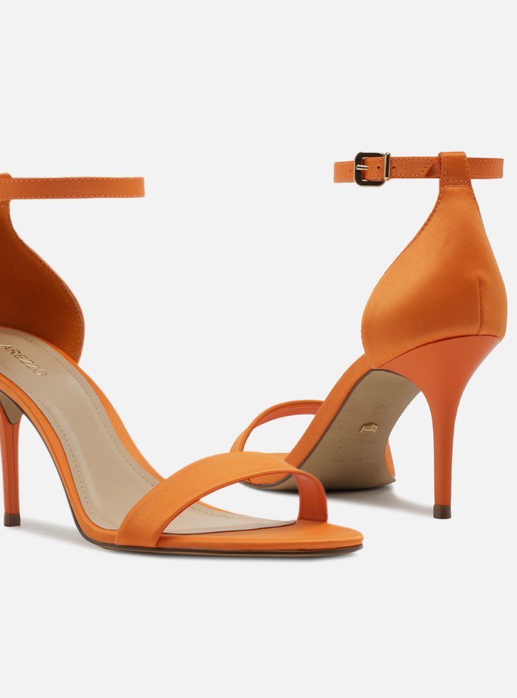 Com tira única sobre os dedos, salto médio confortável e elegante, e fechamento no tornozelo, a clássica sandália fica ainda mais charmosa na sua versão laranja.