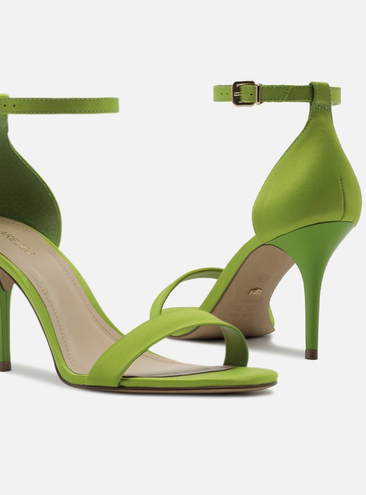 Com tira única sobre os dedos, salto médio confortável e elegante, e fechamento no tornozelo, a clássica sandália fica ainda mais charmosa na sua versão verde.
