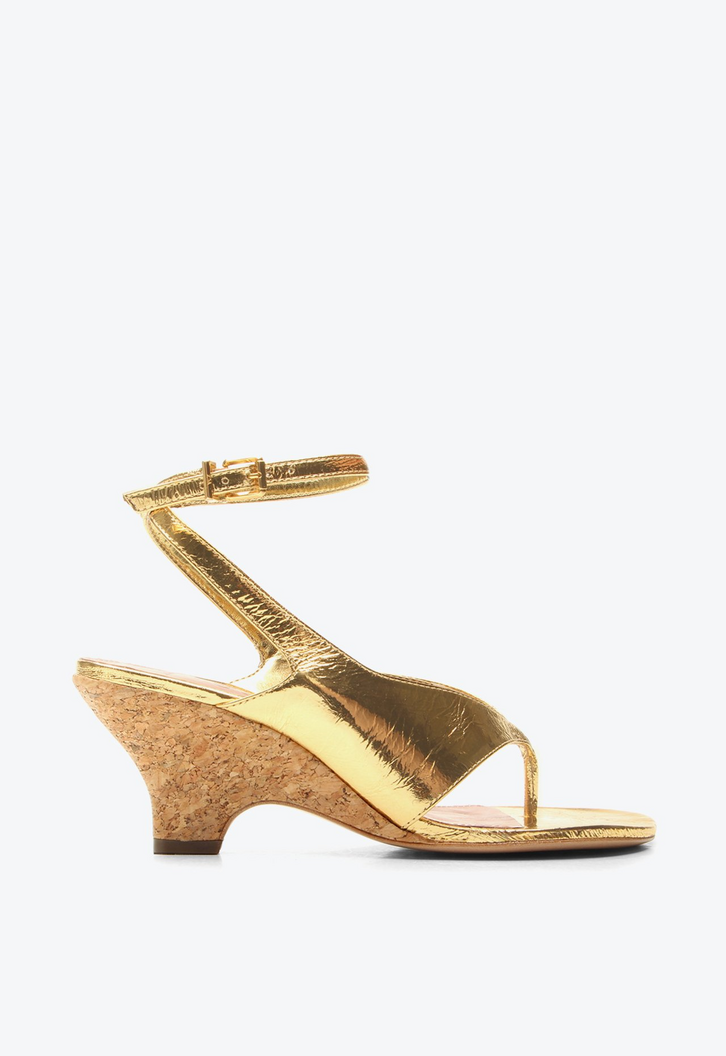 Sandália Tegani dourado. Com design autoral e proporções que entregam presença, conforto e versatilidade. O cabedal estilo toe sandal garante feminilidade e elegância, enquanto o salto escultural em cortiça natural acrescenta leveza e um toque marcante. Com fechamento em fivela ajustável, é a escolha perfeita para quem busca um sapato estiloso, sofisticado e confortável, ideal para acompanhar produções descomplicadas ou mais fashion das VCZ lovers.