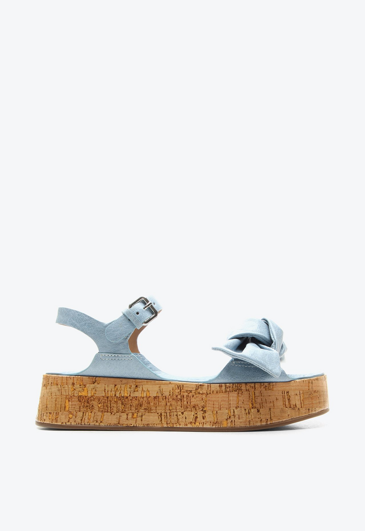 A sandália Victoria possui a sua forma mais larga que os demais modelos, por isso, sugerimos que ao adquirir uma, escolha a numeração menor que a sua. Sandália Victoria azul em couro. Um modelo que expressa estética contemporânea e minimalista, traduzindo elegância em sua forma mais pura. O destaque fica por conta do maxi laço, que adiciona um toque genuíno e autêntico ao design. Com cepa em cortiça natural, o modelo equilibra leveza, frescor e uma aparência orgânica, perfeita para quem valoriza conforto aliado a um visual moderno. Um ícone da temporada, que une moda, atitude e sofisticação em cada detalhe.