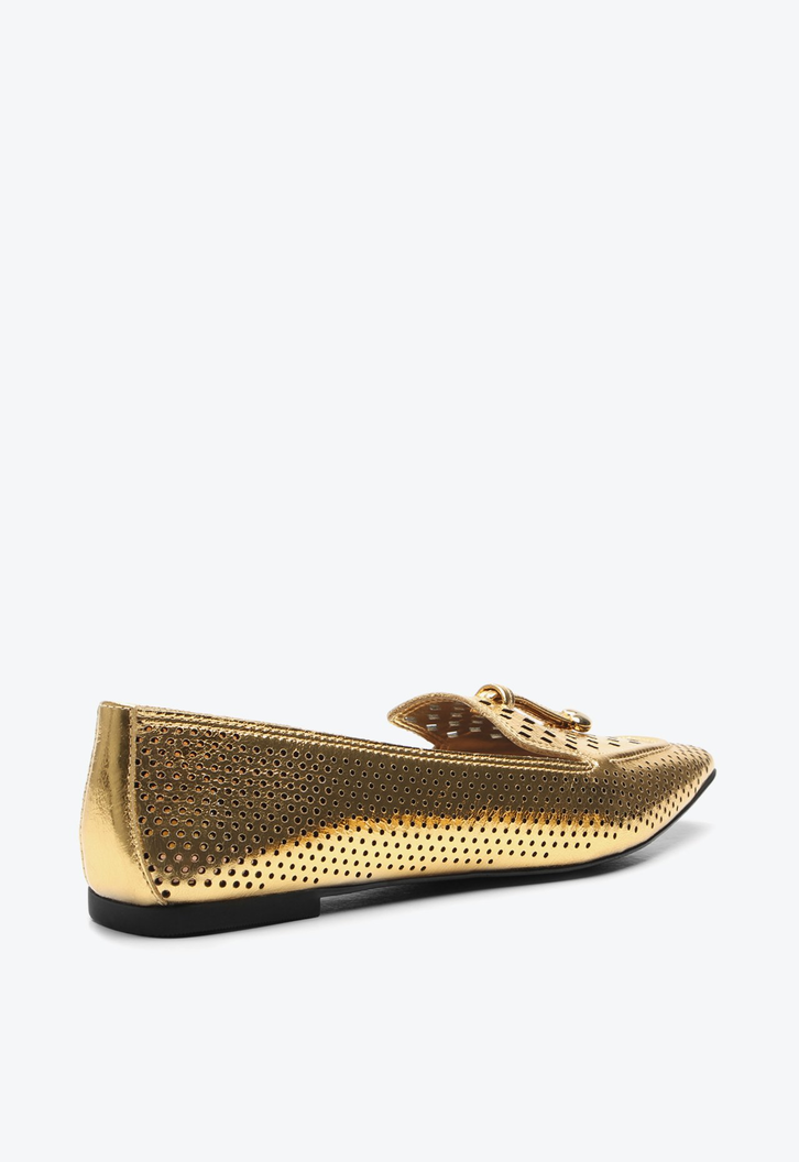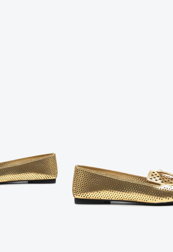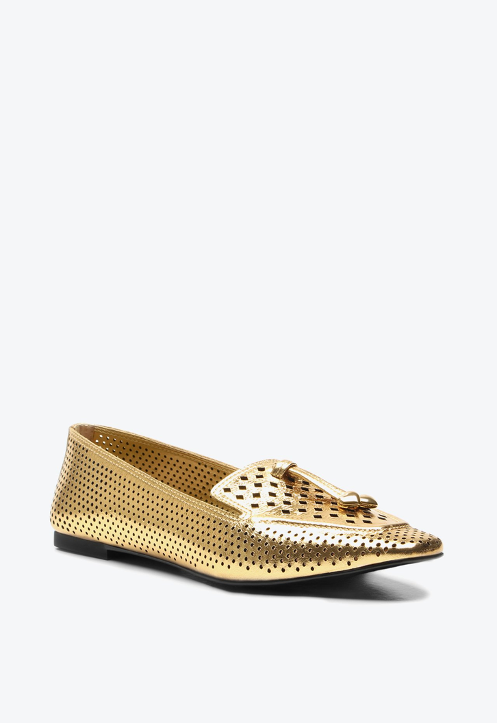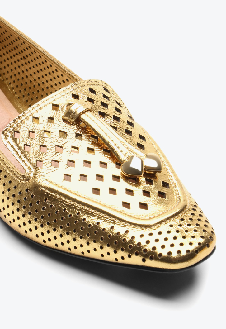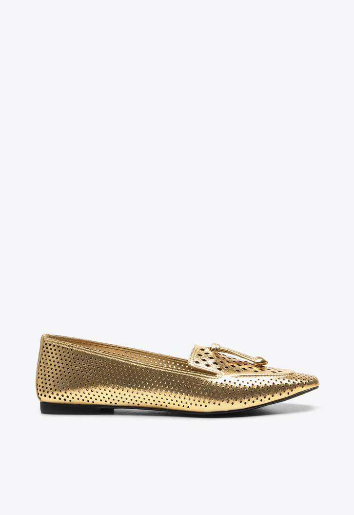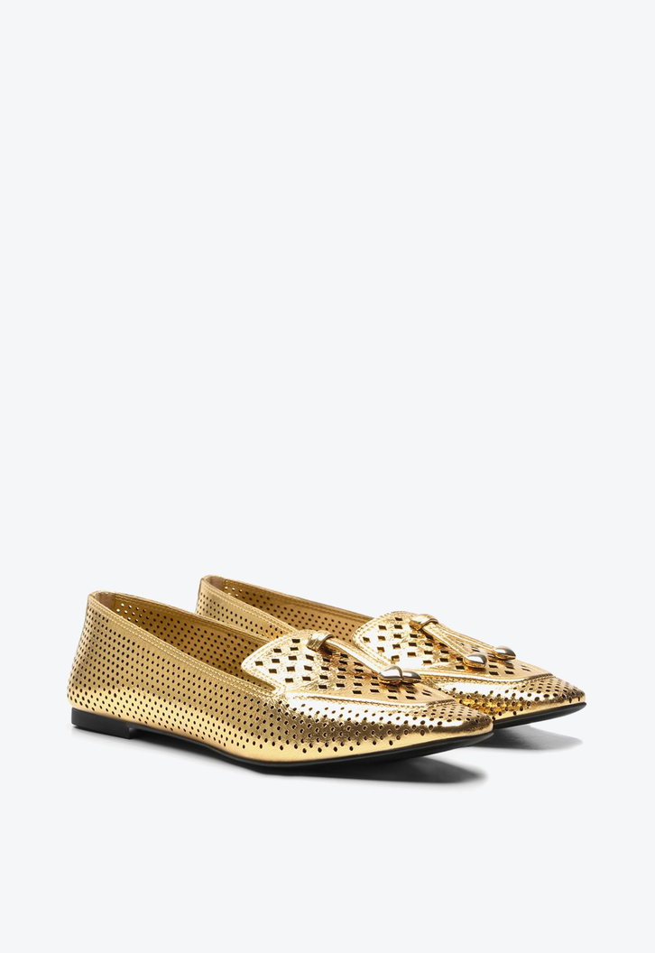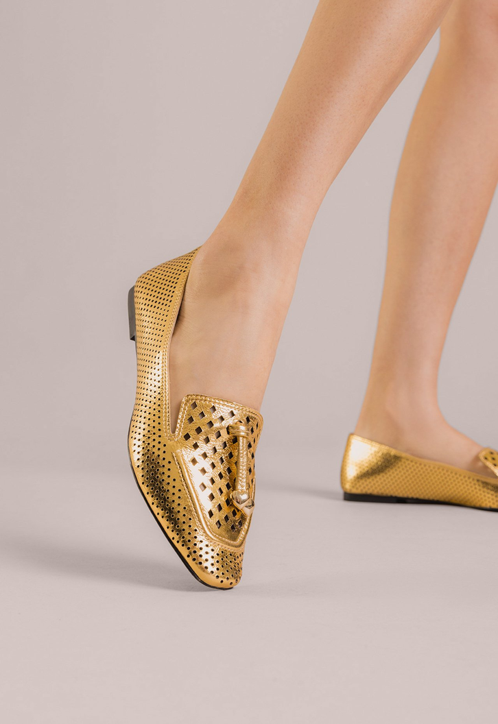 A clássica sapatilha renovada em um design moderno, surge no couro metalizado dourado com recortes super delicados. Perfeita para quem busca praticidade, conforto e autenticidade.