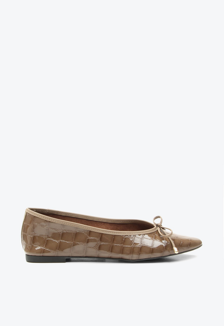 Sapatilha Isabel Marrom combina modernidade e sofisticação em um design atemporal. O acabamento com efeito envernizado e o bico quadrado ganham charme extra com o laço frontal de ponteiras metálicas. Confortável e leve, é ideal para acompanhar a rotina com elegância discreta. Uma escolha versátil para elevar produções com estilo.
