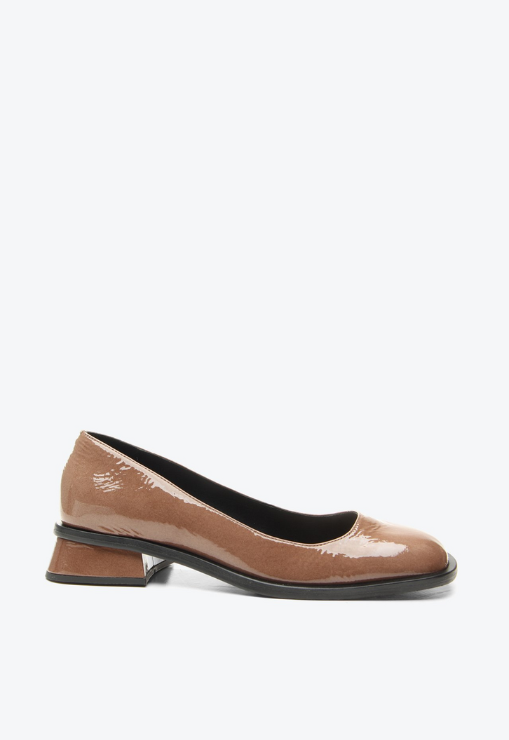 Sapatilha Margot Marrom é aquele essencial elegante que faz toda a diferença. Com acabamento em verniz, traz bico redondo clássico e salto geométrico baixo, criando um visual moderno na medida certa. O brilho polido adiciona sofisticação às produções. Um modelo versátil e atemporal, perfeito para quem busca estilo, conforto e presença sem esforço.