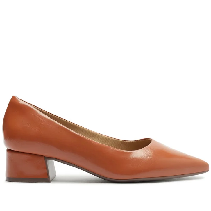 Sapatilha clássica de salto bloco, na cor marrom. O modelo tem salto em bloco baixo e bico fino. Traz cabedal com recorte arredondado sobre o peito do pé. Fechada, com palmilha bege e assinatura Anacapri, a sapatilha exibe todo o peito do pé.