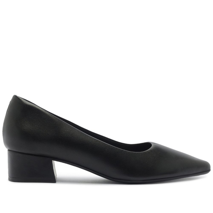 Sapatilha clássica de salto bloco, na cor preta. O modelo tem salto em bloco baixo e bico fino. Traz cabedal com recorte arredondado sobre o peito do pé. Fechada, com palmilha bege e assinatura Anacapri, a sapatilha exibe todo o peito do pé.