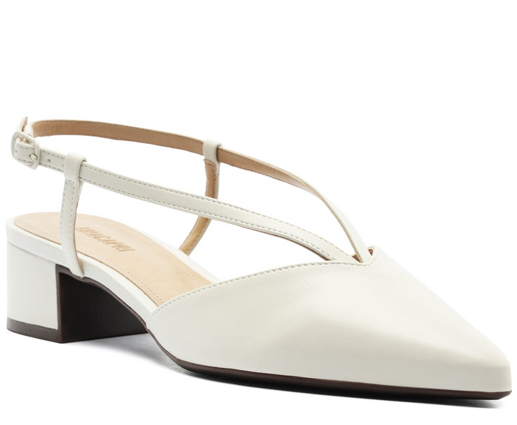Sapatilha slingback de salto bloco e bico fino, na cor branca. O modelo, de material similar ao couro, possui salto em bloco baixo e bico fino. Estilo slingback - aberto atrás, apresenta cabedal com tirinhas finas que seguem do centro da gáspea pela pala - presas pelas laterais - e contornam o calcanhar, com fecho afivelado. Com palmilha nude e assinatura Anacapri, a sapatilha deixa o peito do pé e calcanhar à mostra. Porque Apostar: O mood urban boho está em alta! Simples assim: para relaxar e curtir com estilo a temporada de Verão’26 Anacapri com elegância! Com detalhe imponente no cabedal - a sapatilha slingback vai elevar todas as suas produções. Esse modelinho com calce easy de saltinho bloco é per-fei-to e proporciona conforto absoluto para os pés, deixando o visual incrível e chic.