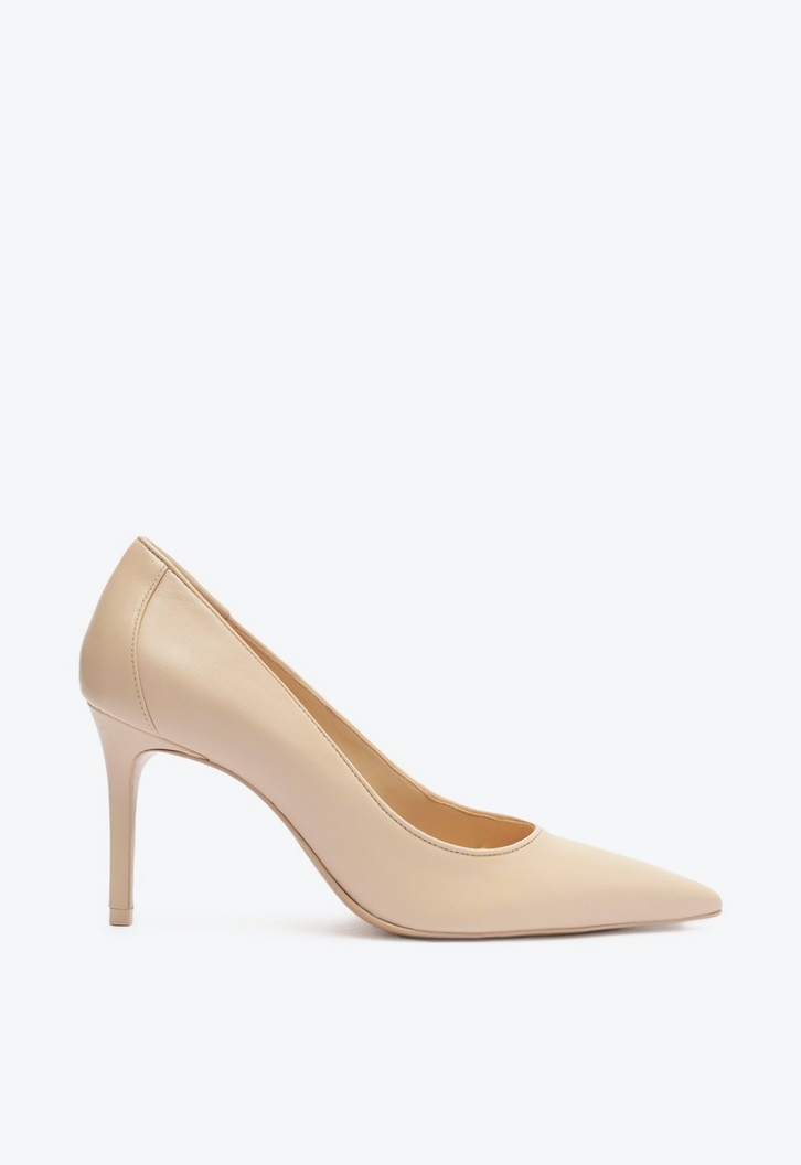 Transforme seu visual com este scarpin de salto alto fino, um verdadeiro clássico atemporal. Com cabedal em couro de alta qualidade, ele proporciona um toque luxuoso e duradouro. O bico fino confere uma silhueta elegante e feminina, perfeita para ocasiões que exigem sofisticação.