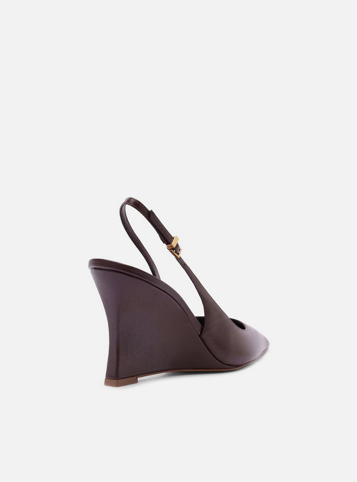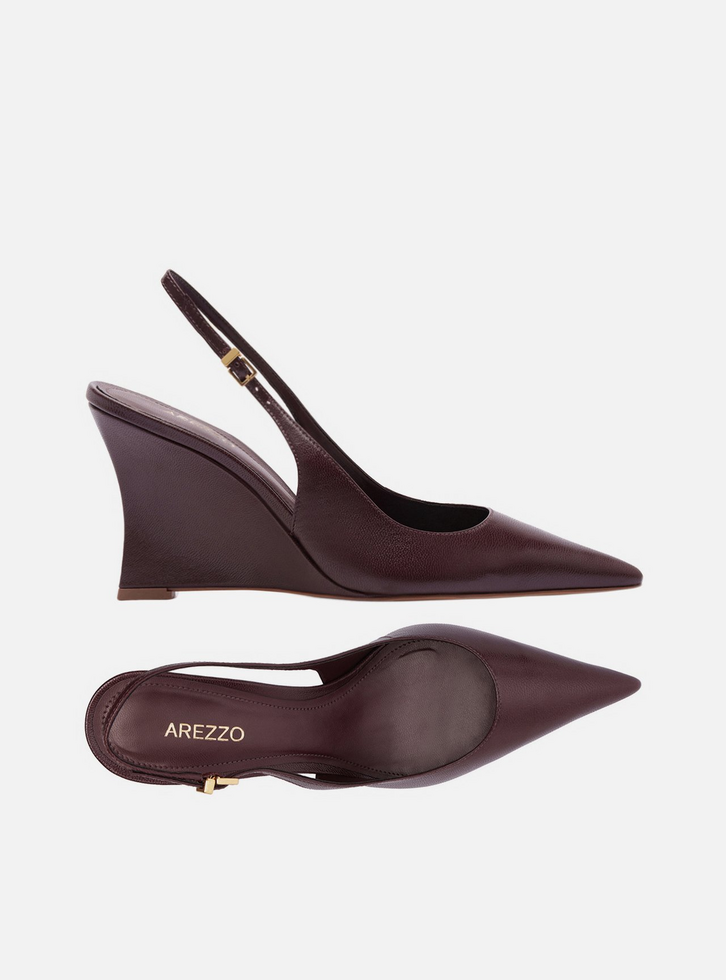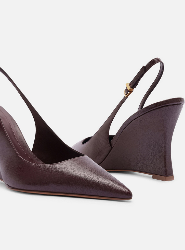 Scarpin Bordô Dark Couro Salto Alto Anabela Slingback