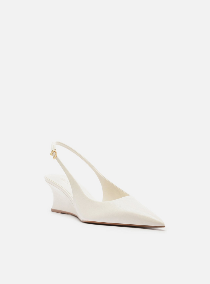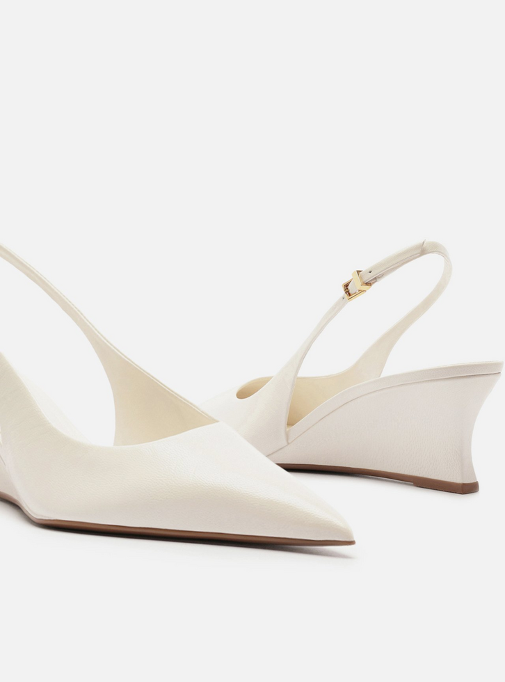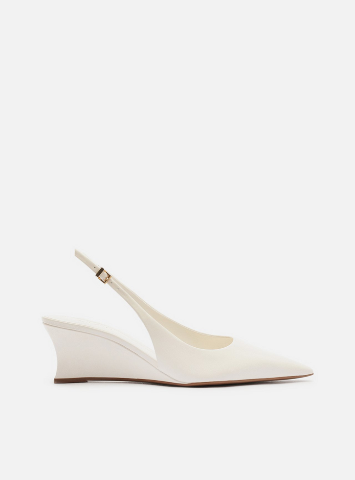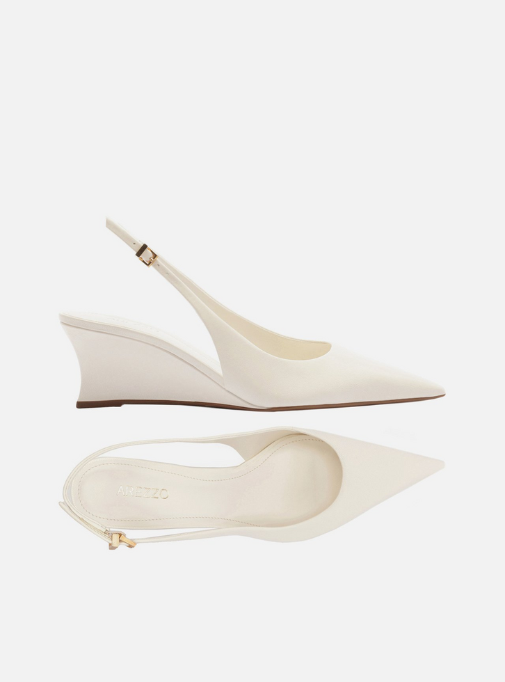 Scarpin Branco Couro Salto Baixo Anabela Slingback