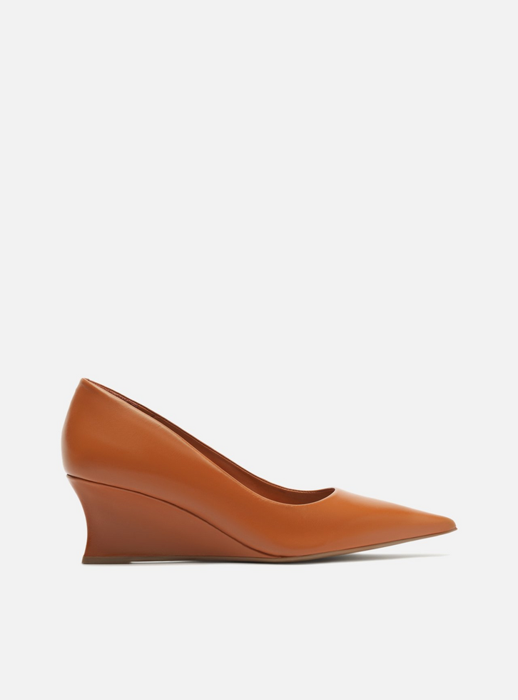 Scarpin Marrom Couro Salto Baixo Anabela Bico Fino