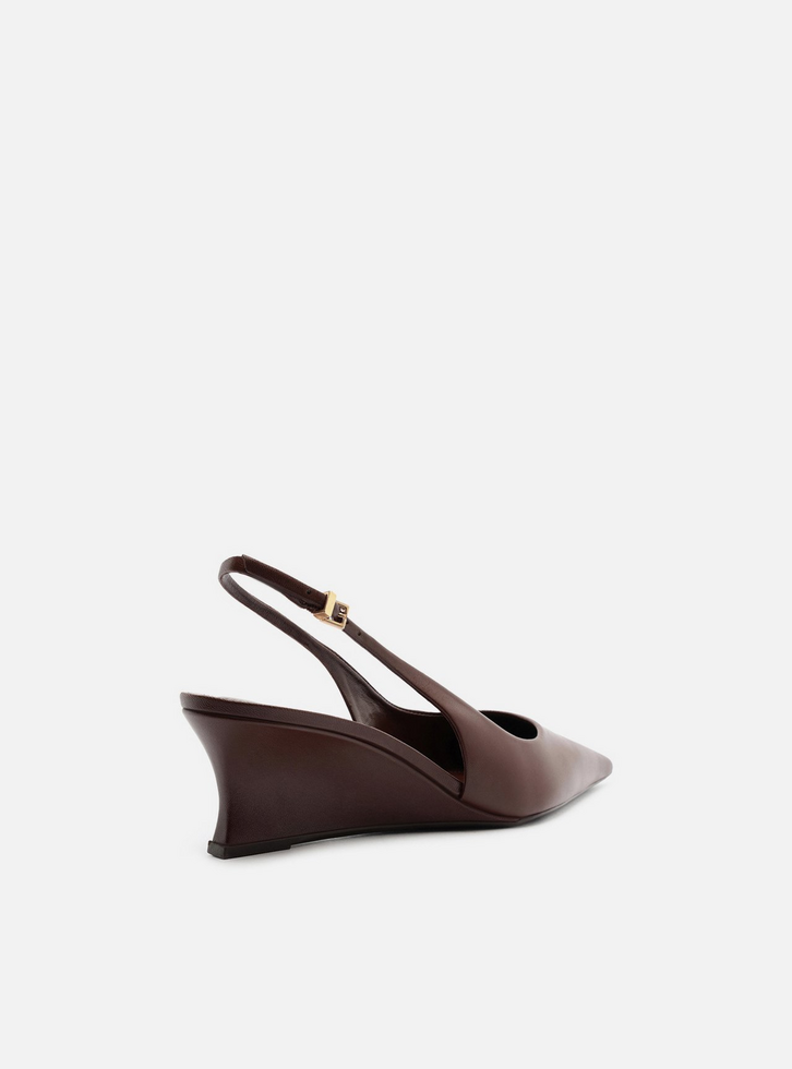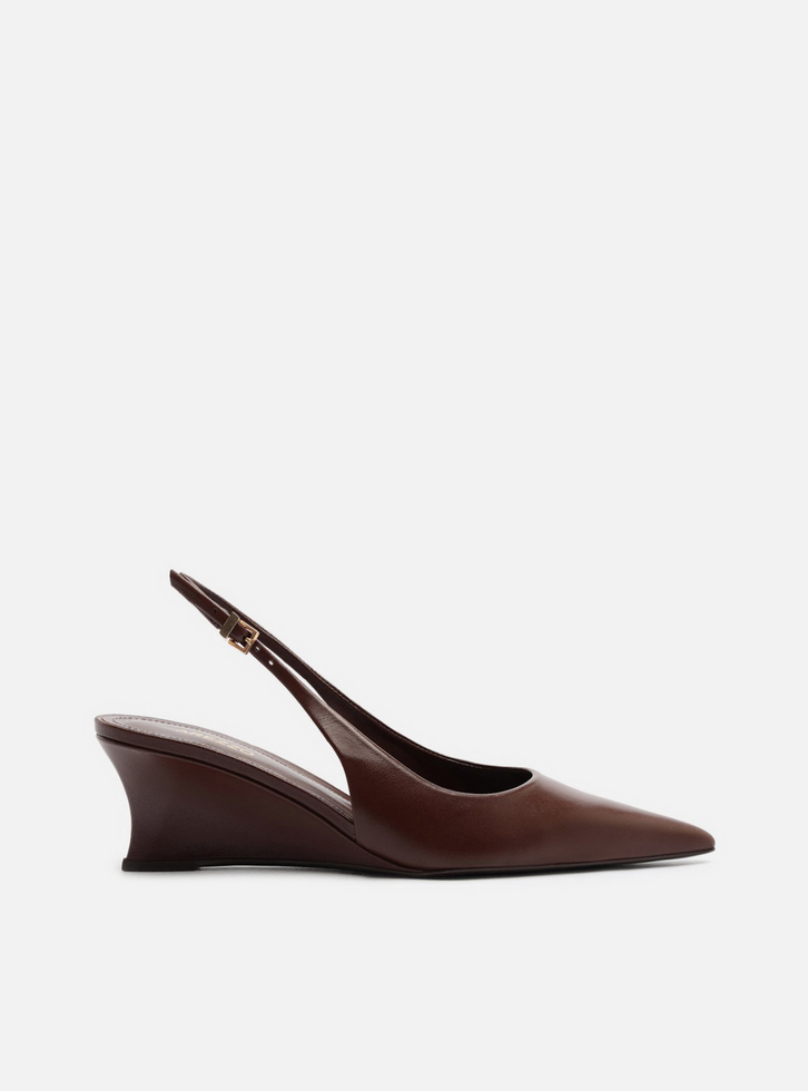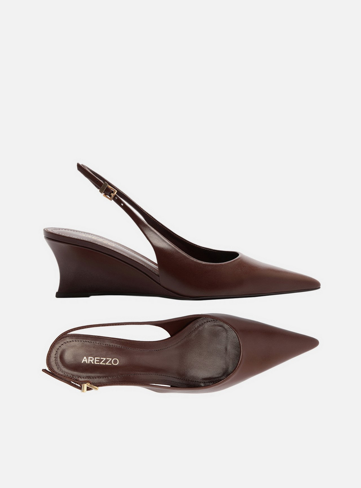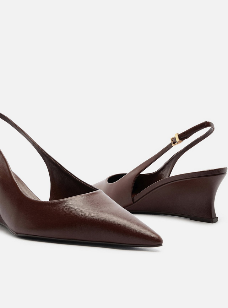 Scarpin Marrom Couro Salto Baixo Anabela Slingback