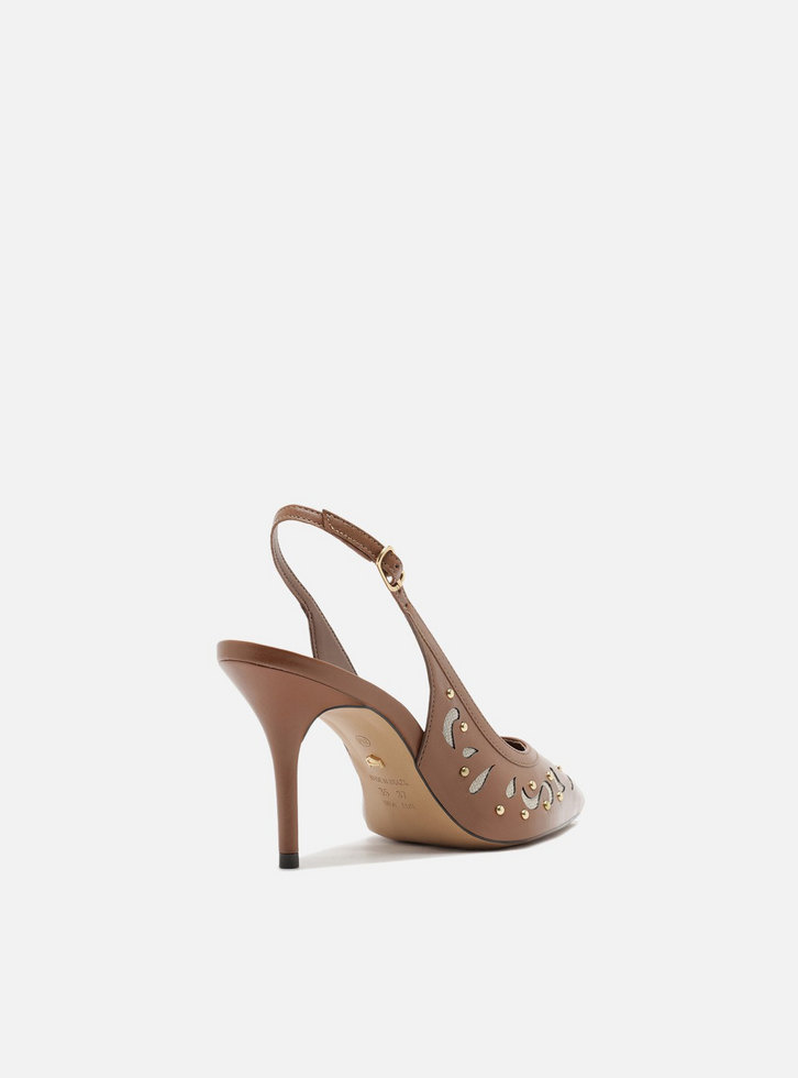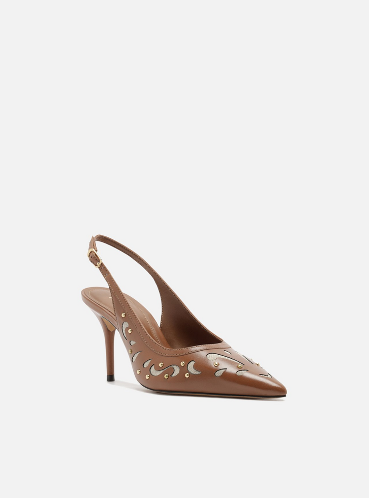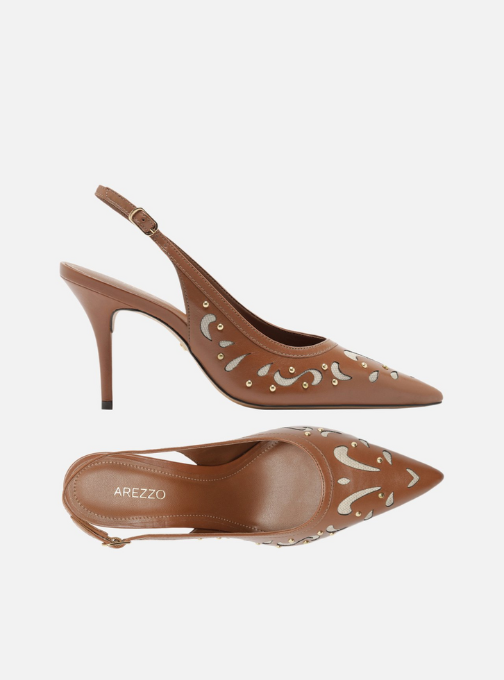Scarpin Marrom Couro Salto Fino Slingback Recortes