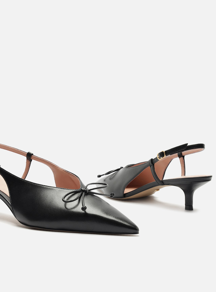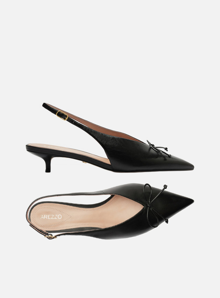 Scarpin Preto Arezzo Couro Bico Fino Slingback Laço