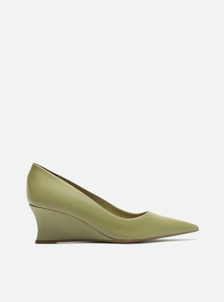 Scarpin Verde Oliva Couro Salto Baixo Anabela Bico Fino