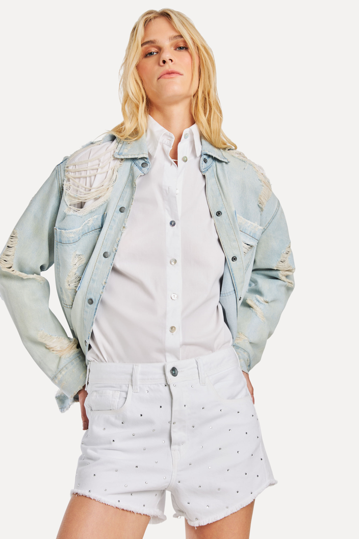 O Short Sarja Brilho é despojado e ideal para o dia a dia. Tem modelagem solta ao corpo, cintura média e comprimento curto. O gancho deslocado alonga a silhueta e o tecido de sarja tem toque macio e caimento impecável. É perfeito para quem busca conforto e praticidade. Short Feminino Reversa produzido eticamente no Brasil. A modelo mede 1,81 m, 64 cm de cintura e 89 cm de quadril.