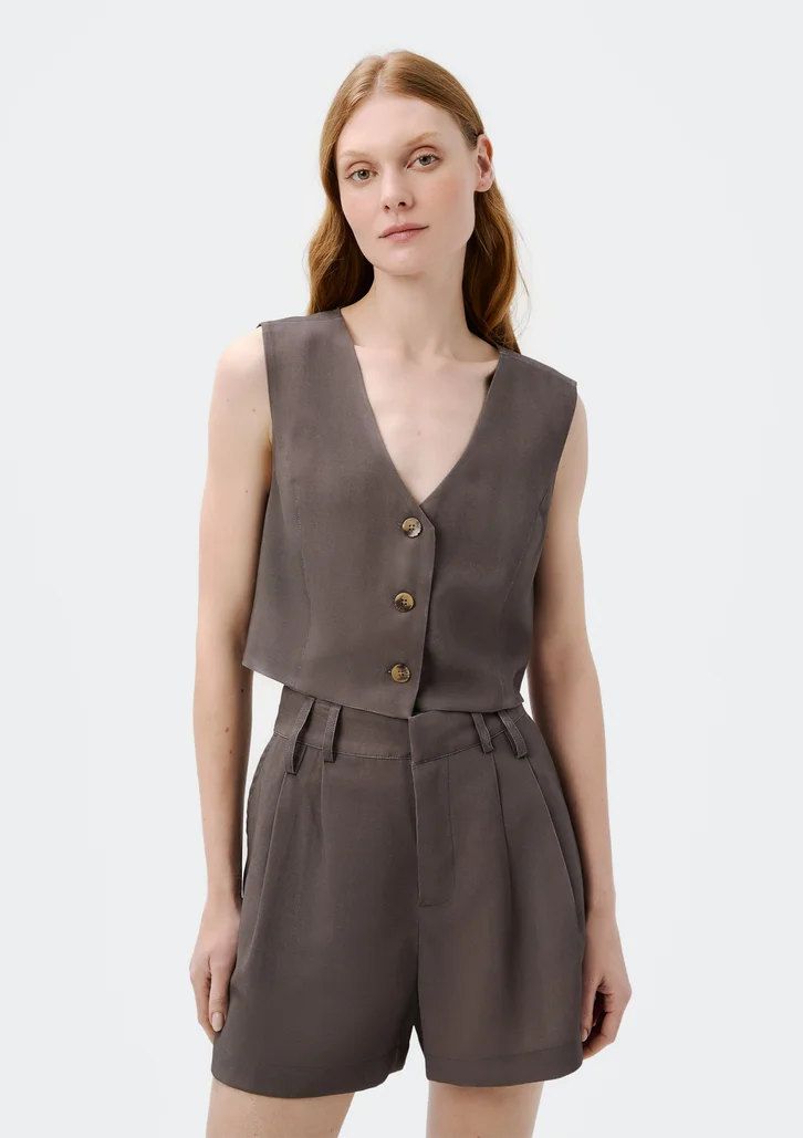 Shorts feminino em alfaiataria feito em tecido peach touch para um toque suave e delicado. Com design elegante e detalhes sofisticados, é uma escolha versátil para diversas ocasiões.Detalhes da peça: